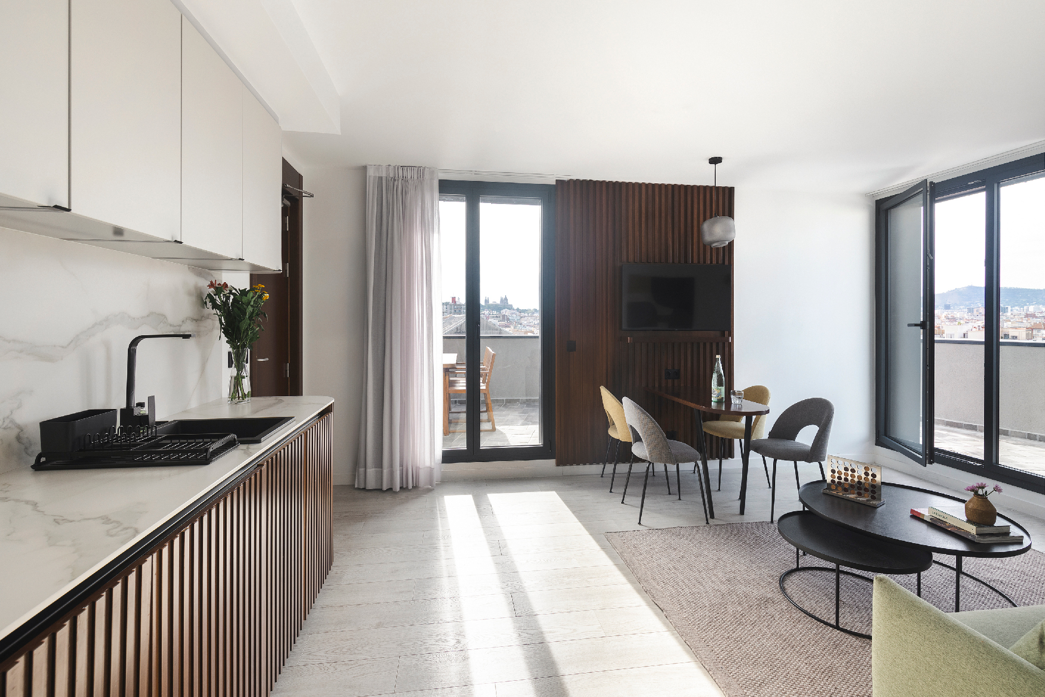 והיהלום שבכתר? טרסה פרטית גדולה, שטופת שמש, המשקיפה על קו הרקיע של ברצלונה – המקום המושלם להירגע ולהתרווח בלב העיר. אידיאלי לשישה אורחים שמחפשים גם נוחות וגם מרחב.