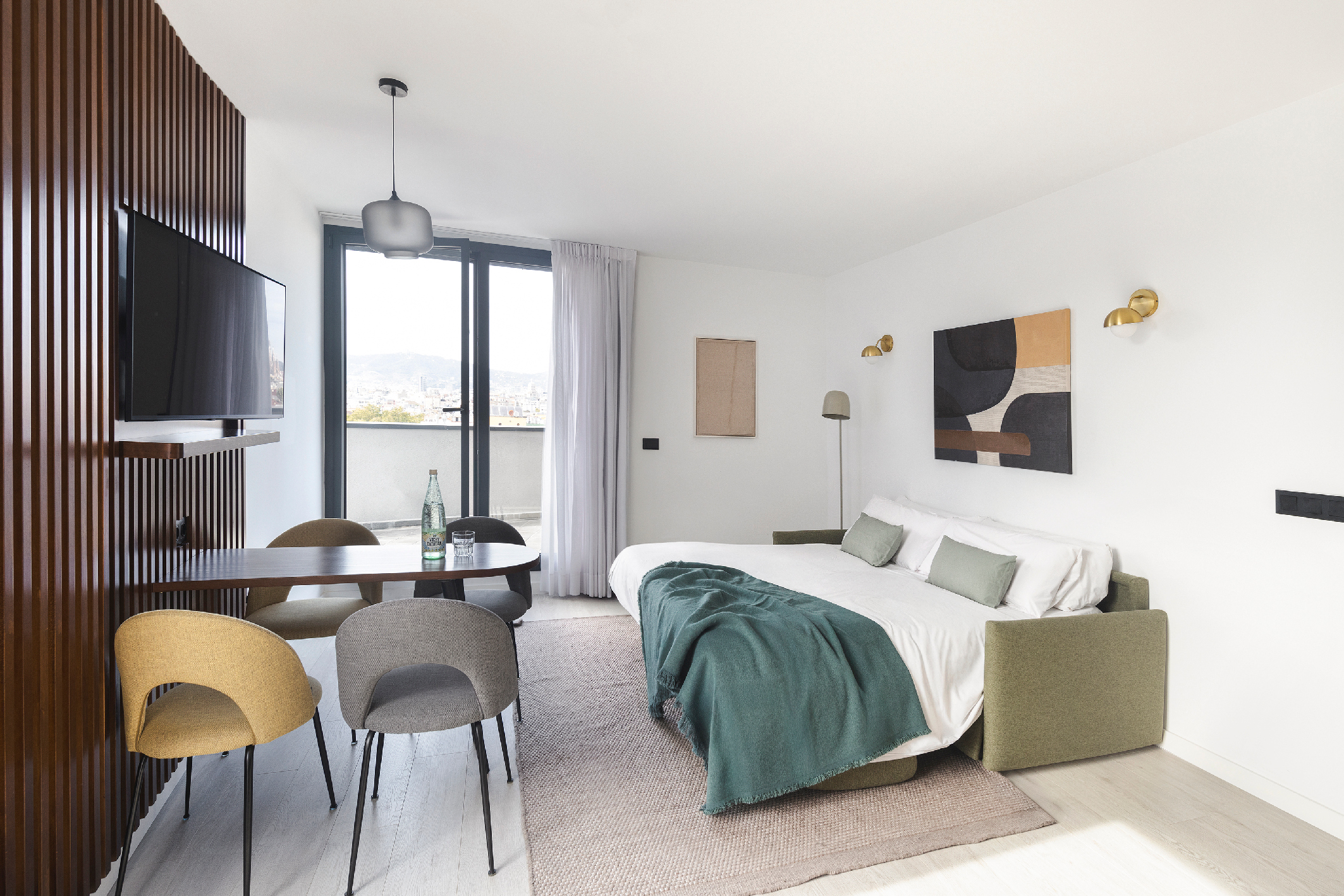בקומה העליונה של דירות הנופש master לה רמבלה מחכה לכם פנטהאוז מרווח בגודל 70 מ"ר – חוויית מגורים בגובה אחר. בעיצוב מודרני בהשראה ים-תיכונית וסקנדינבית, החלל מואר, אלגנטי ונעים, עם איזון מדויק בין נוחות לסגנון.