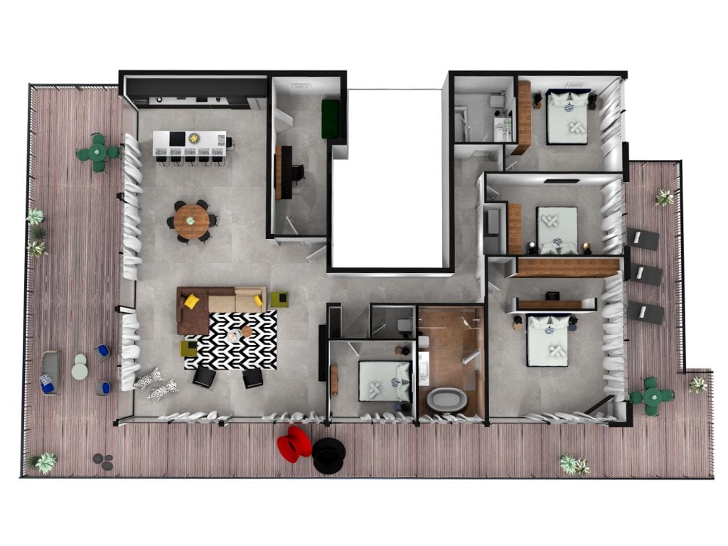 פנטהאוז עם ארבעה חדרי שינה עם מרפסת גדולה