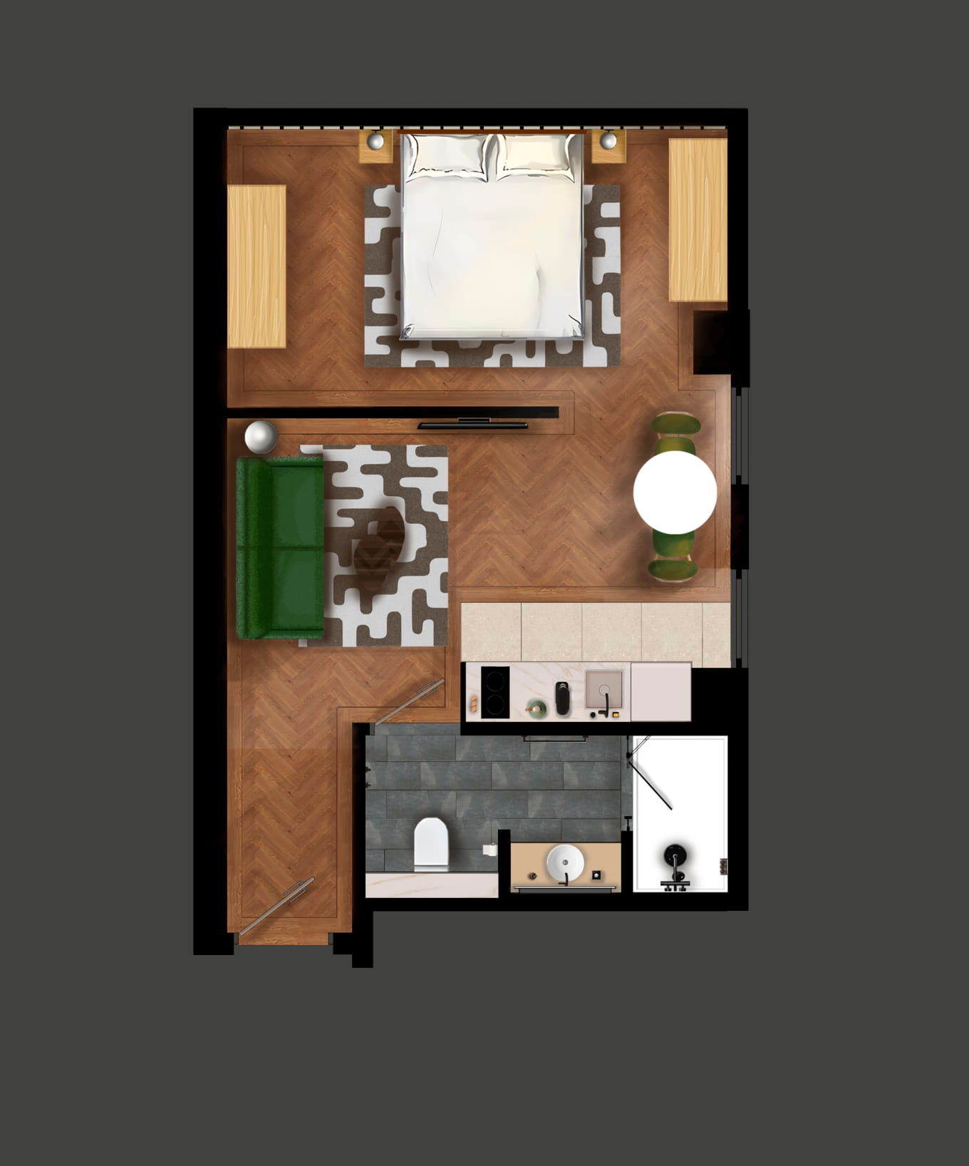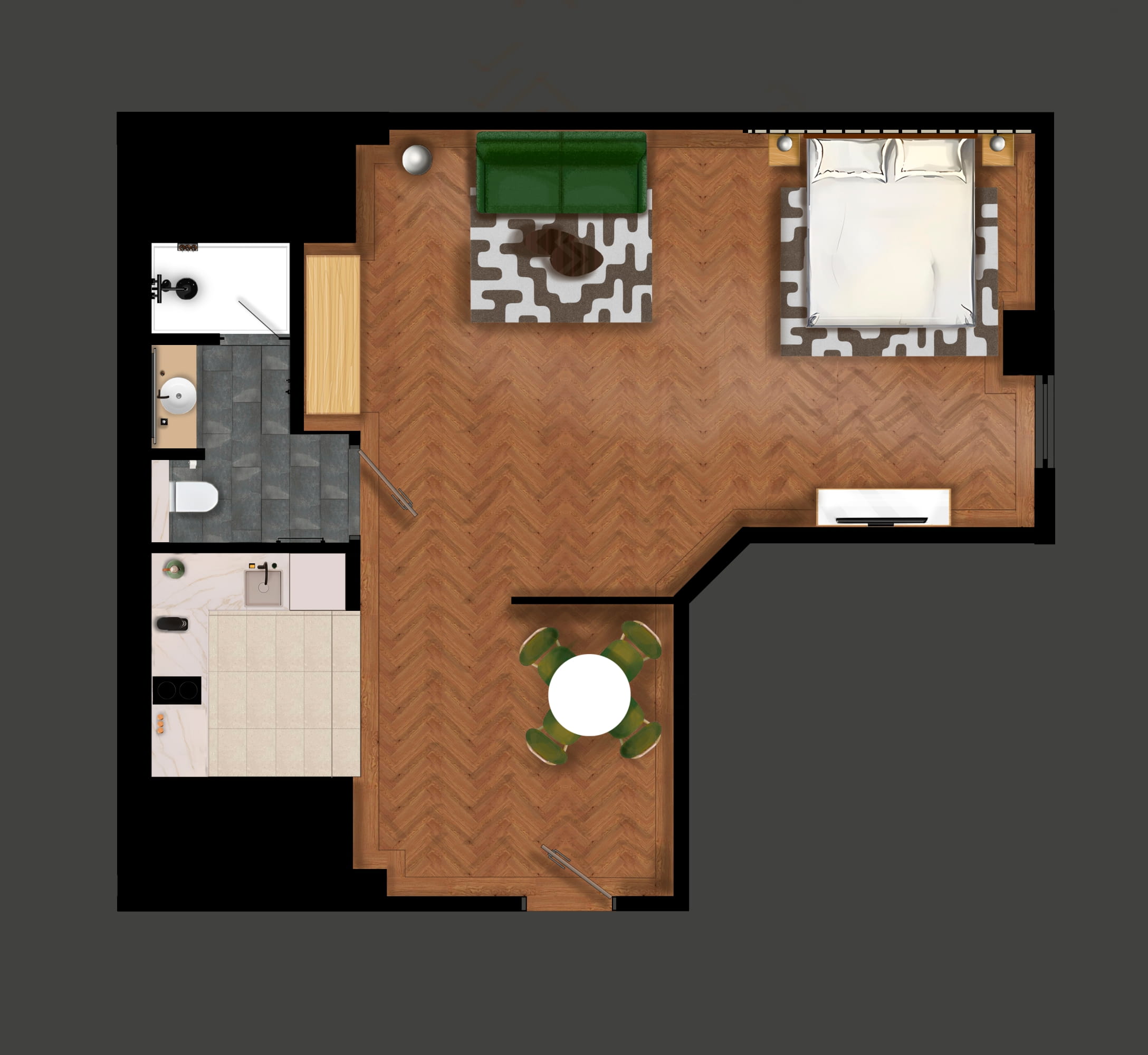 הדירה משלבת מינימליזם מודרני, חמימות סקנדינבית ואלגנטיות פונקציונלית, ויוצרת חלל חמים ופרקטי לשהות קצרה או ממושכת. מיטת קינג סייז וספה נפתחת נוחה מאפשרות סידור שינה פשוט ונוח, ומטבח מאובזר הכולל מדיח כלים, מיקרוגל ומקרר מספק את כל הדרוש לארוחות בדירה.